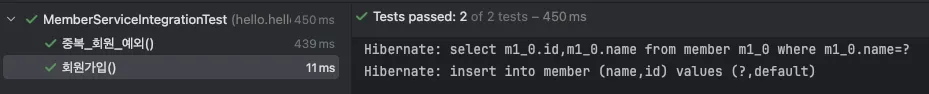 스프링 통합 테스트 실행 및 결과