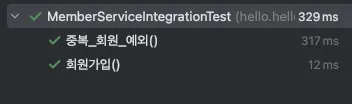 앞에 만든 스프링 통합 테스트를 실행하면 정상 작동하는 것을 확인할 수 있습니다.