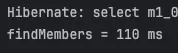 스프링 통합 테스트 코드를 실행하면 **join()**의 소요 시간이 나옵니다. 스프링 서버를 실행하고 http://localhost:8080/members에 접속하면 **findMembers()**의 소요 시간이 나옵니다.