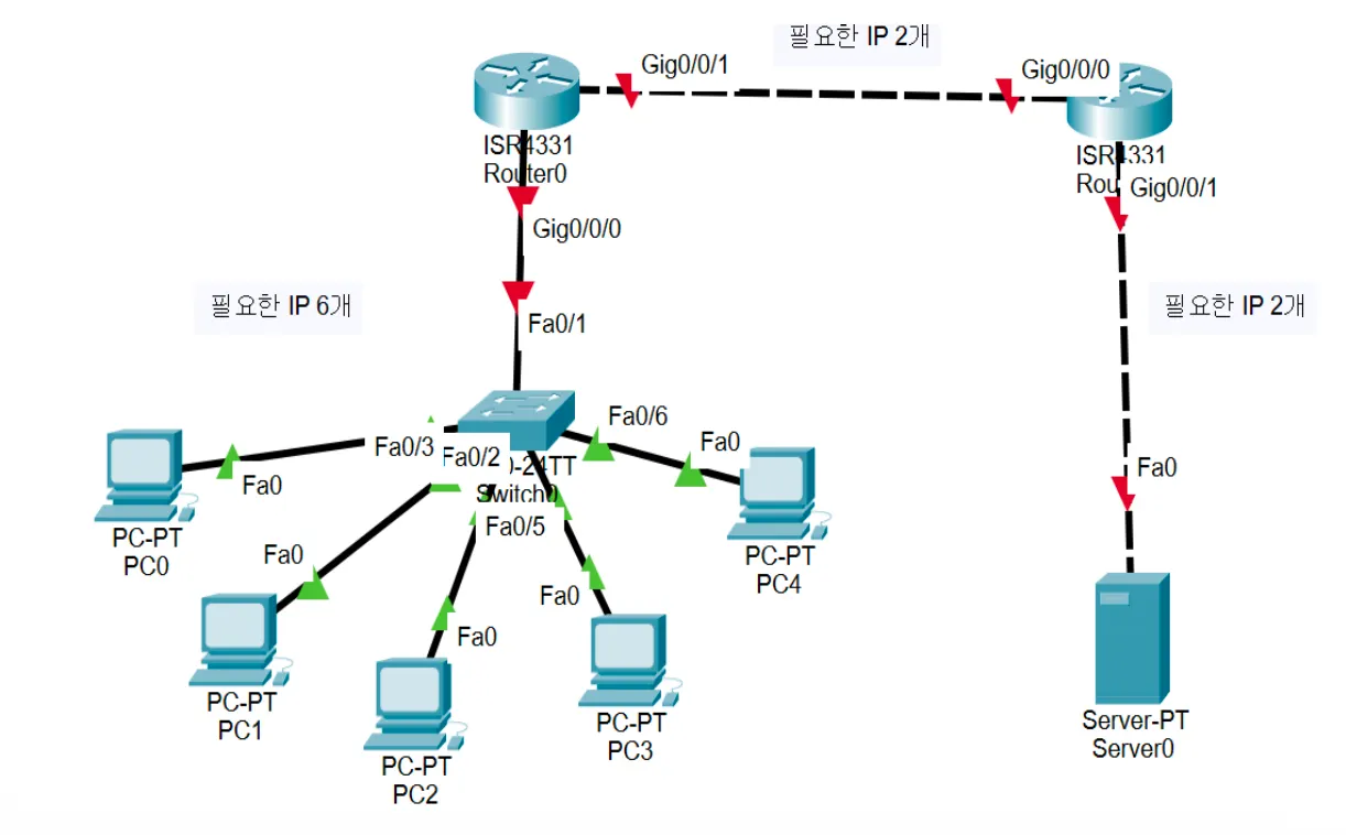 - 가장 많은 호스트 IP 주소가 필요한 네트워크 먼저 서브넷팅을 할당한 후, 나머지를 다시 서브넷팅