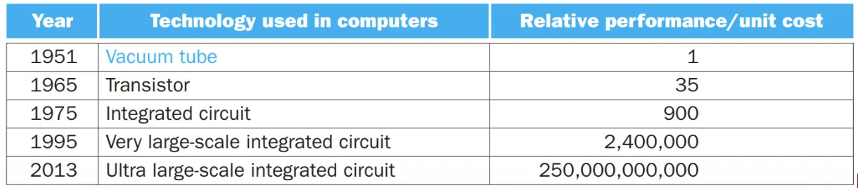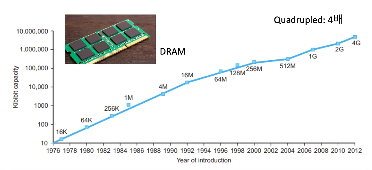 - 수십년간 3년마다 4배 향상