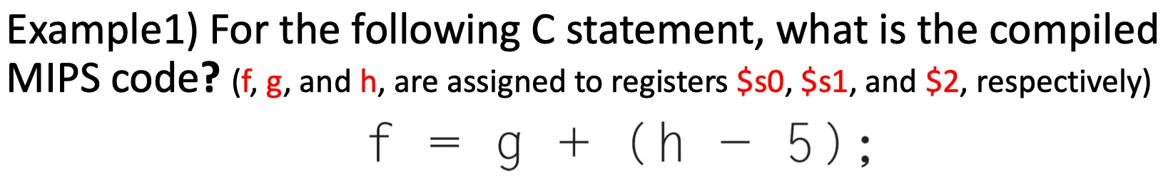 add $t0, $s1, $s2 # 레지스터 $t0에 g + h 저장