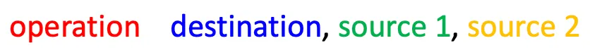 - 세 개의 operand → 두 개의 source, 한 개의 destination