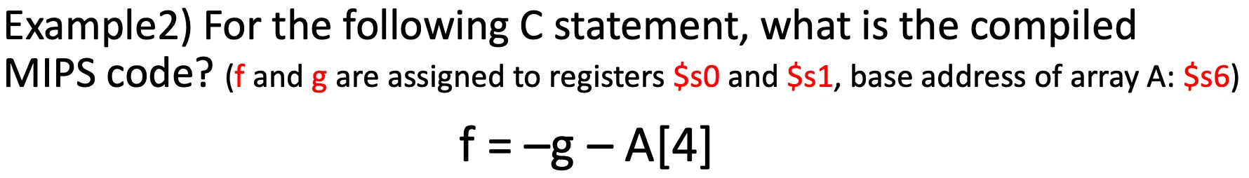 g = h + A[8] # g, h = $s1, $s2, A의 base address = $s3