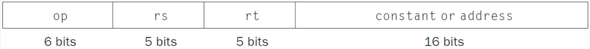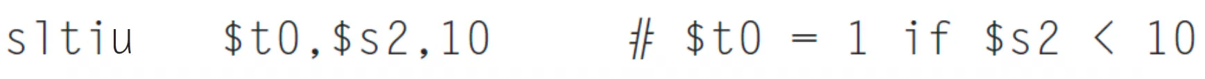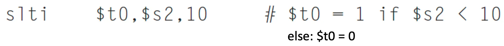 - Set on less than immediate (slti): register1이 constant 값보다 작으면 1, 아니면 0