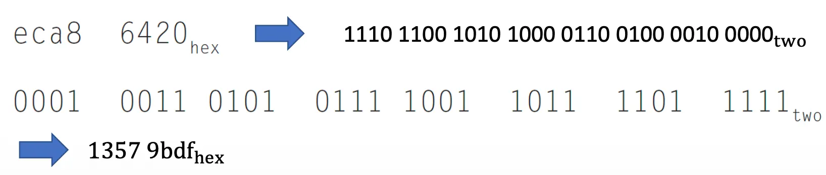2진수를 16진수로 바꾸려면 4자리씩 묶어서 변환