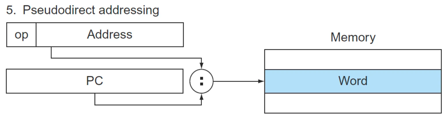 - pseudodirect addressing: jump에서 사용하는 주소 접근법