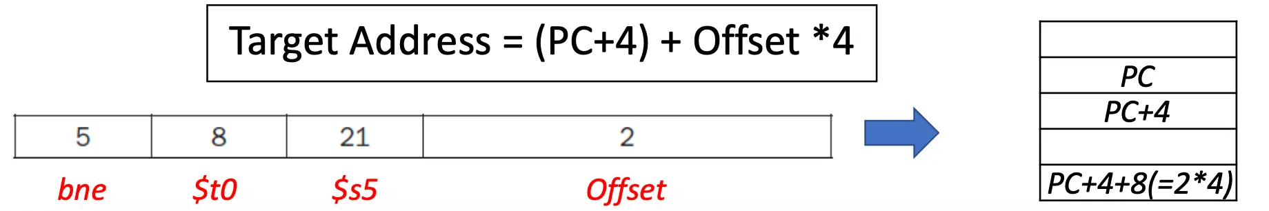 - branch address의 주소가 명령어의 const와 PC의 합(bne, beq)