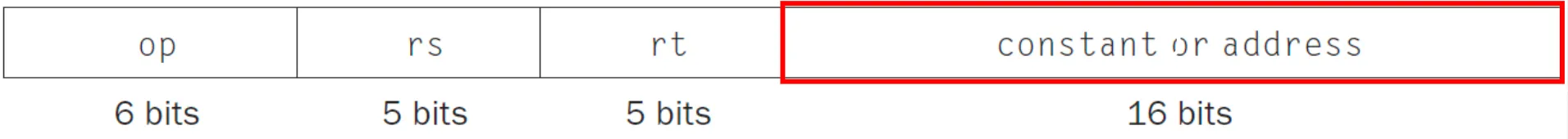 - I-Format에서 immediate 파트에 16비트만 저장됨, 하지만 ALU에서는 32비트 레지스터끼리의 연산만 가능
