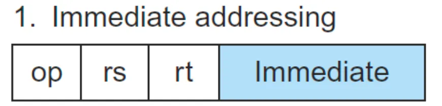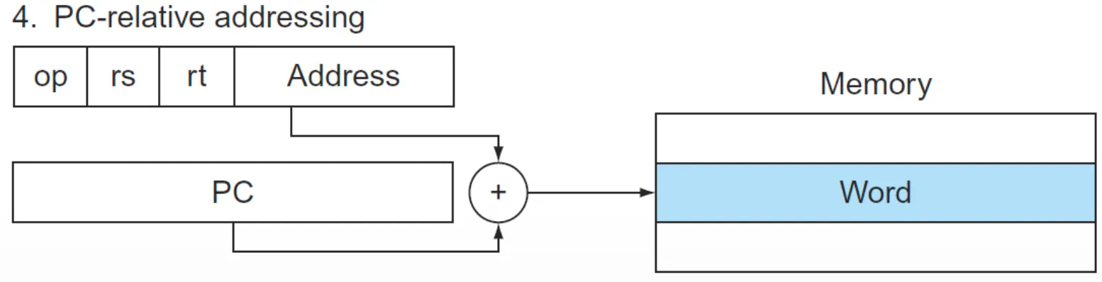 - operand가 메모리에 위치하고, 명령어의 const와 register의 합으로 주소 알아냄 → Array의 시작점 + offset(lw, sw)