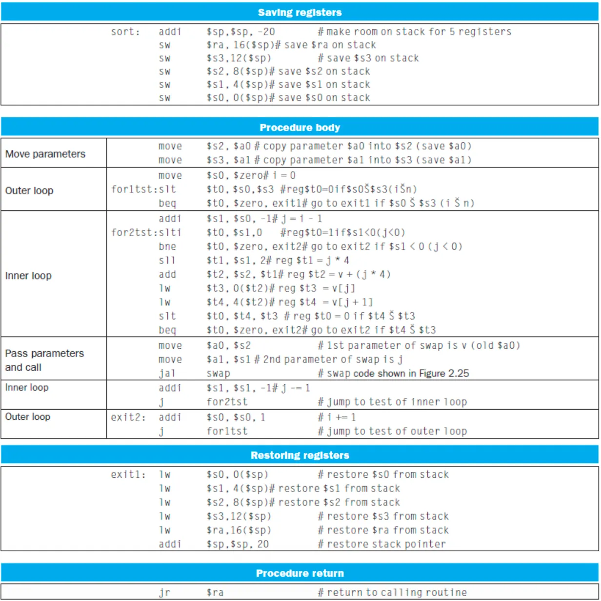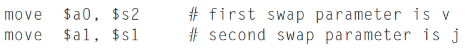 - swap 함수를 위해 $a0 ← v, $a1 ← j