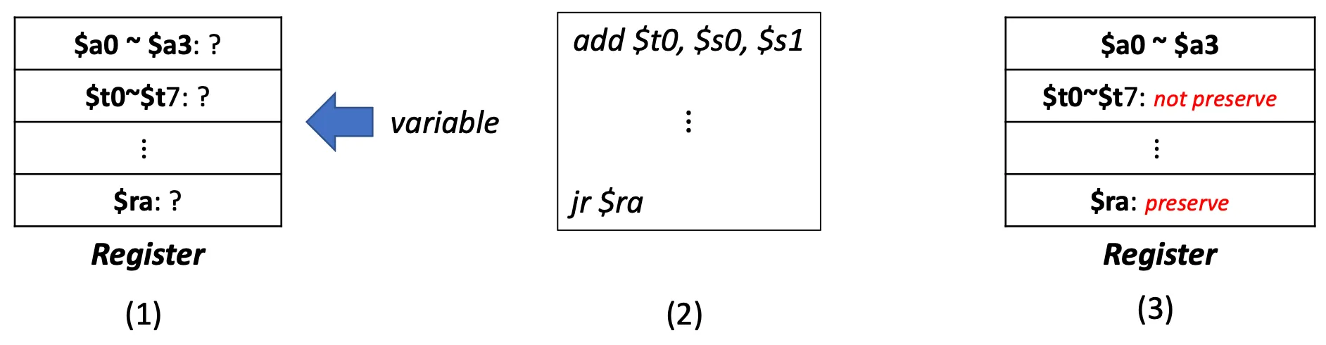 - Preserve registers across the procedure invocation