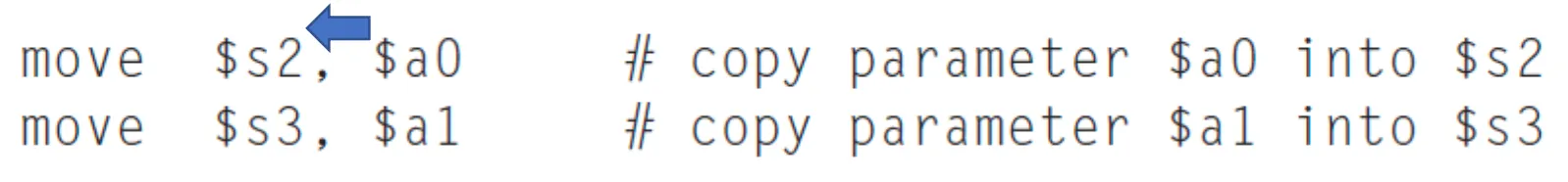 - Callee로 가기 위해 v와 n을 $s2, $s3에 저장