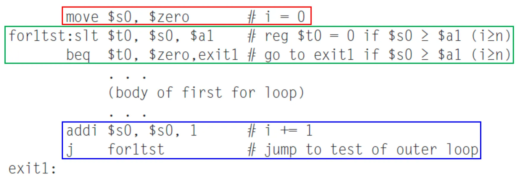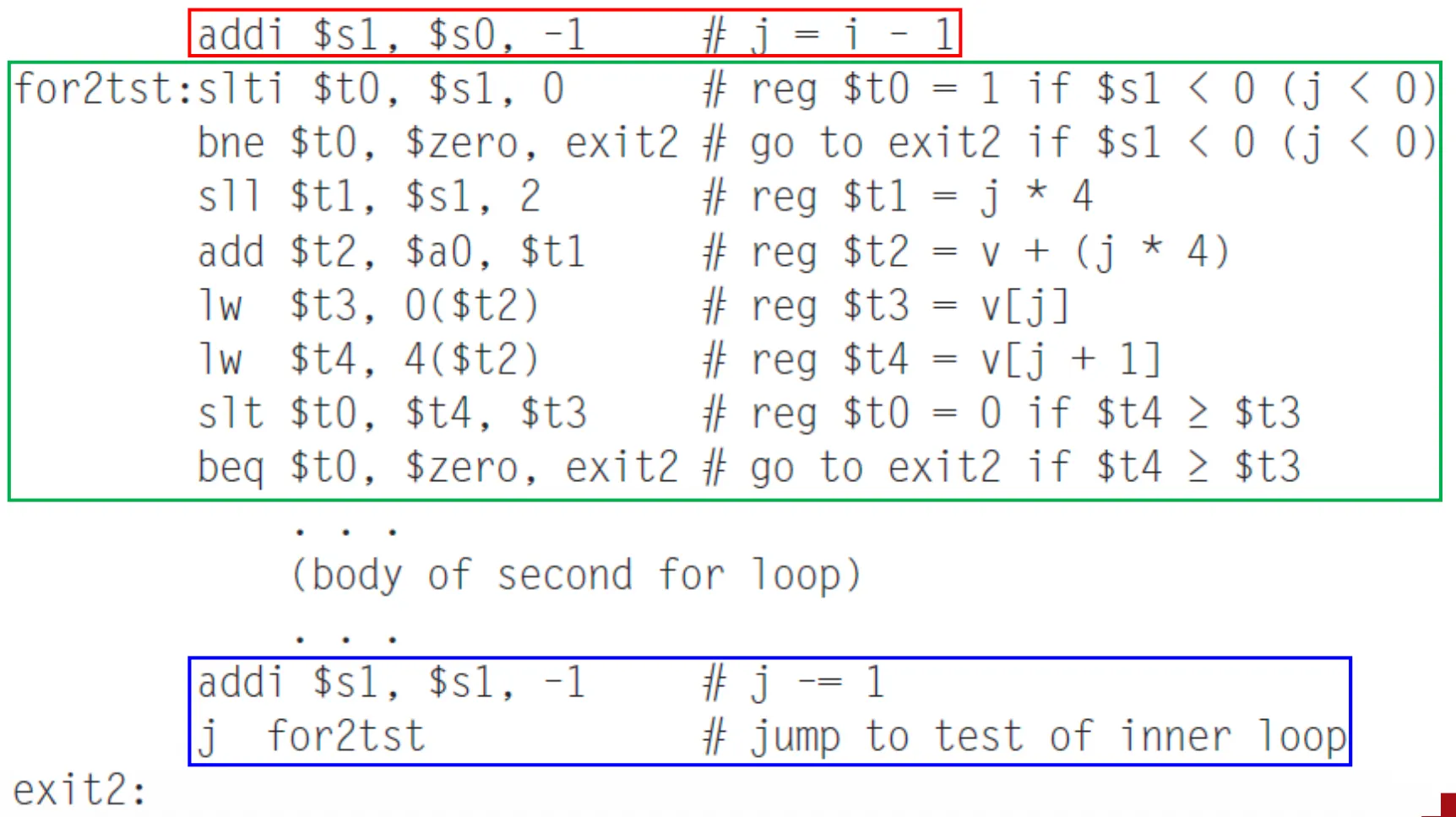 - i, j → $s0, $s1