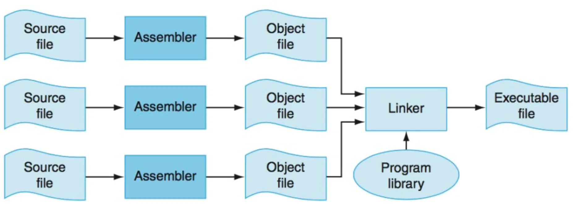 - 독립적으로 어셈블된 모든 오브젝트 파일들을 하나로 묶는 역할 → executable file(.exe file)