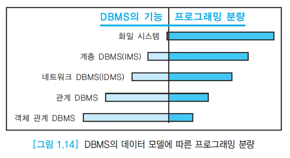 - 화일을 검색하거나 갱신하는 절차가 상대적으로 복잡하기 때문에 프로그래머의 생산성이 낮음