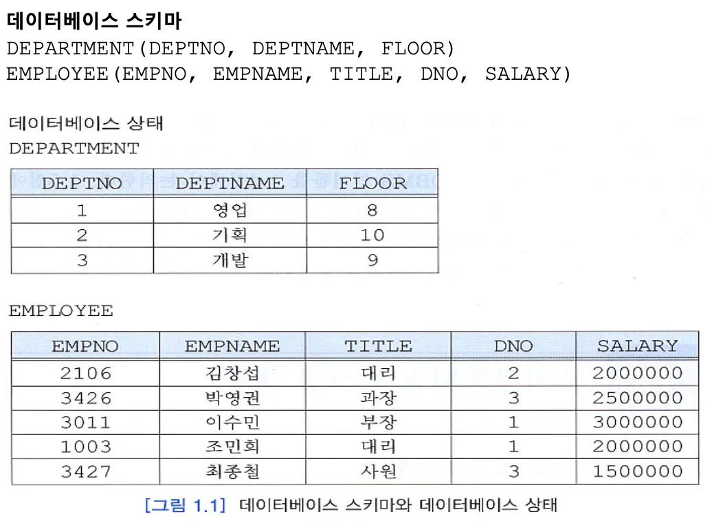 - **시스템 카탈로그(system catalog)**는 저장된 데이터베이스의 스키마 정보를 유지