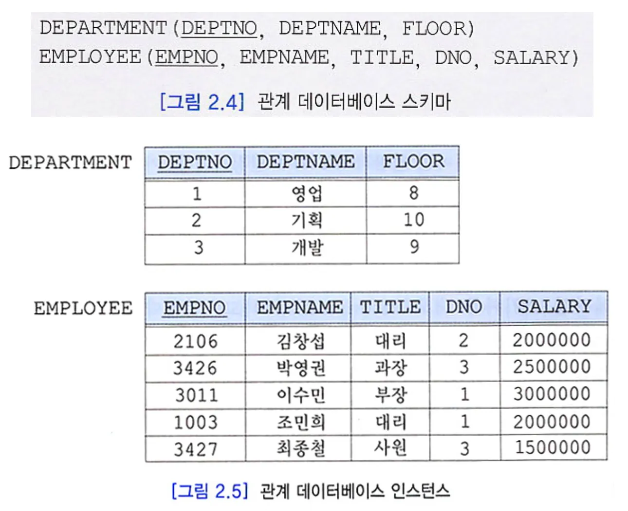 - 릴레이션 인스턴스들의 모임으로 구성됨