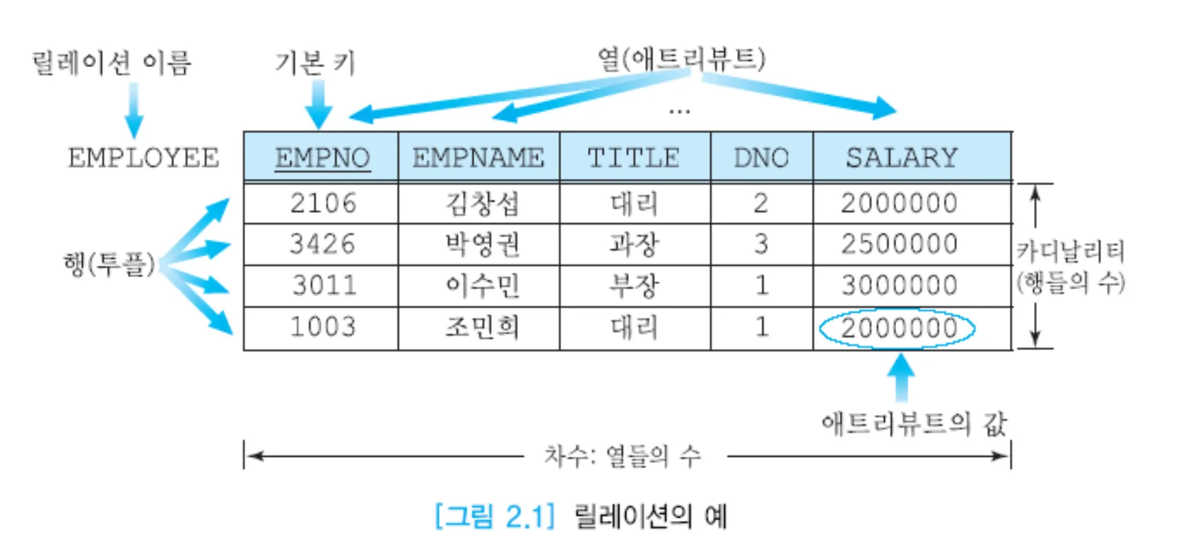 - 관계 데이터 모델은 지금까지 제안된 모델들 중 가장 개념이 단순한 데이터 모델의 하나