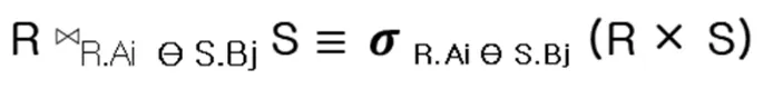- 조인 조건은 R.Ai Θ S.Bj의 형태로 주어지며 Θ는 {=, <>, <=, <, >=, >} 중의 하나