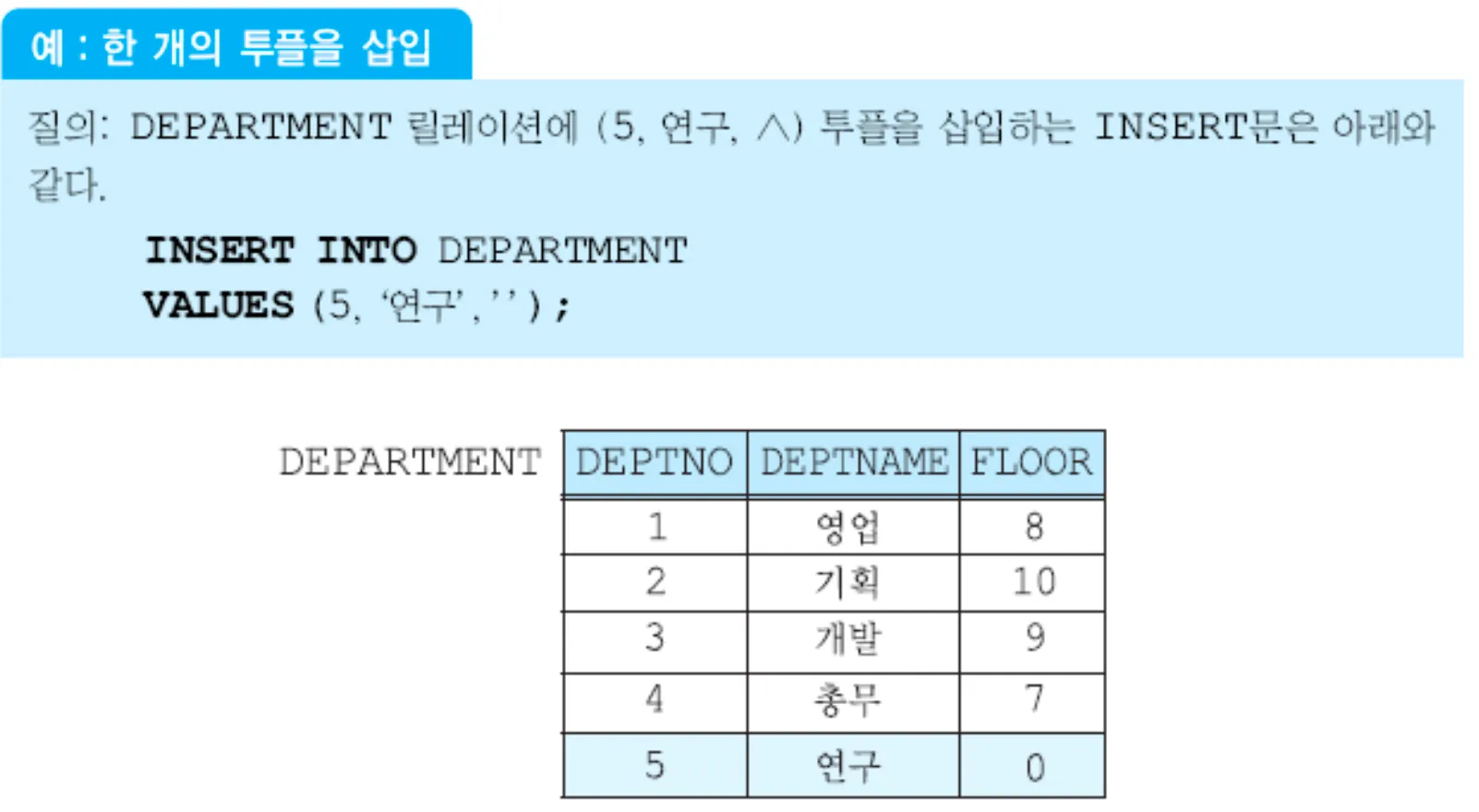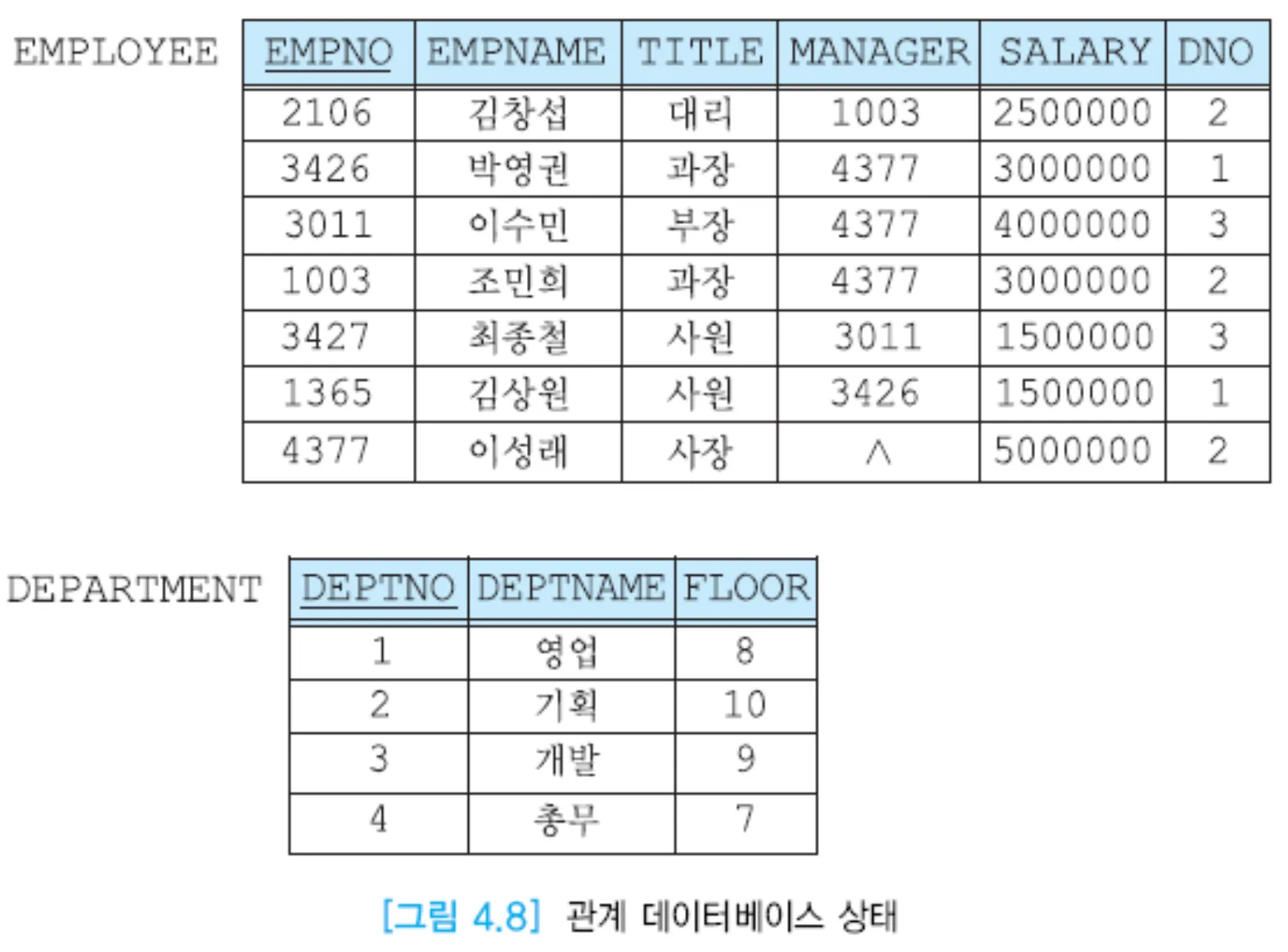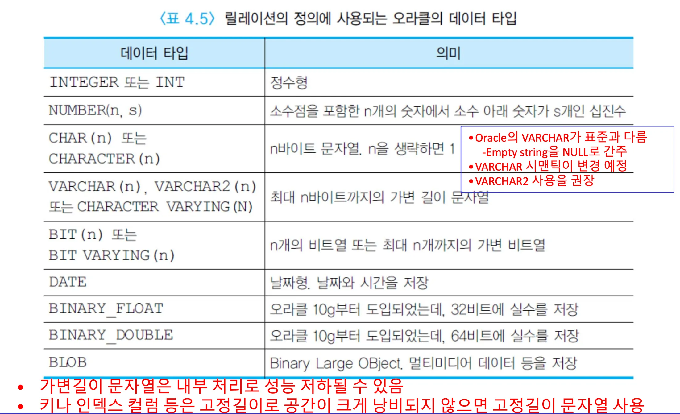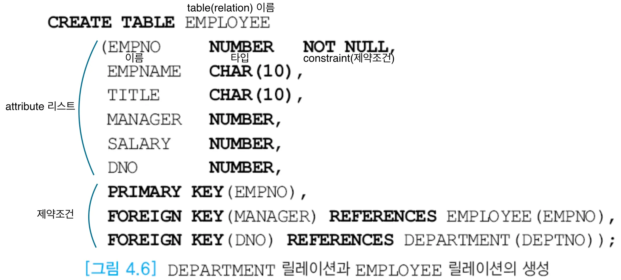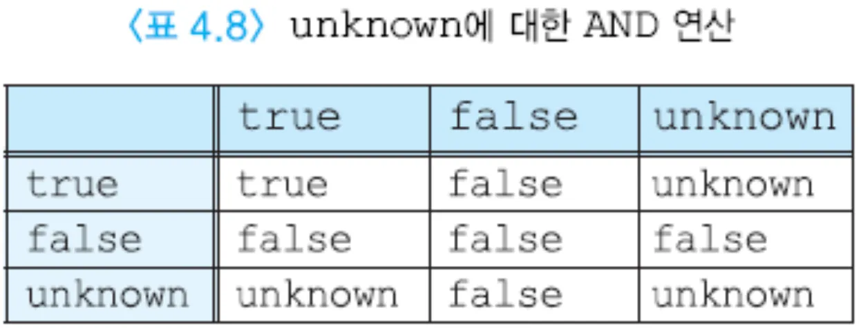 - 관계 데이터 모델은 집합을 기반으로 두고 있어 테이블 내에 동일한 투플을 허용하지 않지만 SQL은 이를 허용함