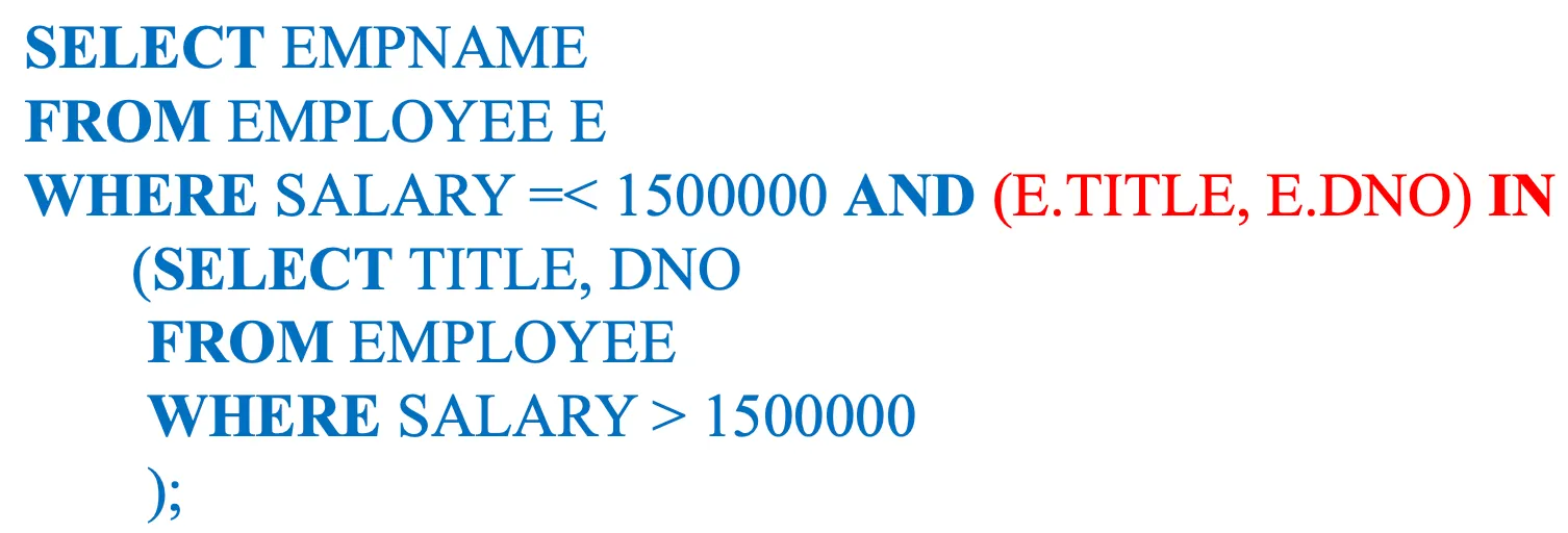 - 릴레이션 S의 모든 투플 값과 쌍을 이루는 릴레이션 R의 A1, A2, …, An 값