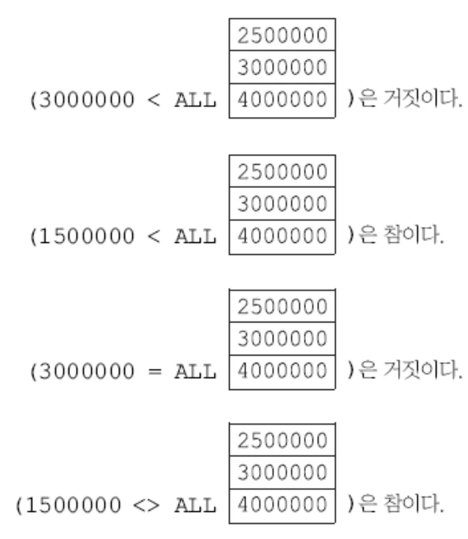- SQL로 표현할 때 동치를 활용: ~하지 않는 …가 없다