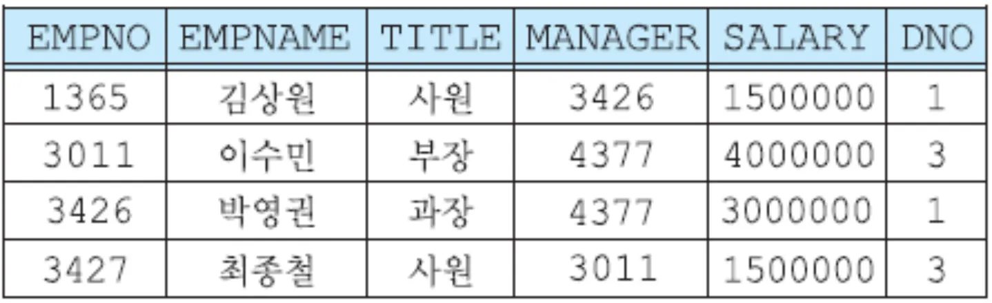 - 왼쪽 외부 조인(left outer join), 오른쪽 외부 조인(right outer join), 완전 외부 조인(full outer join)