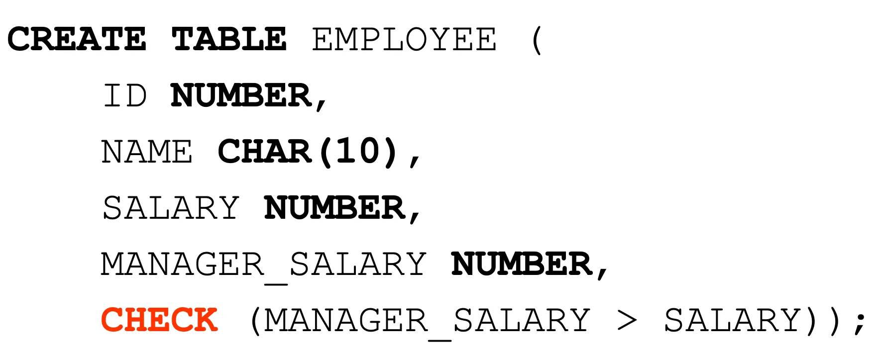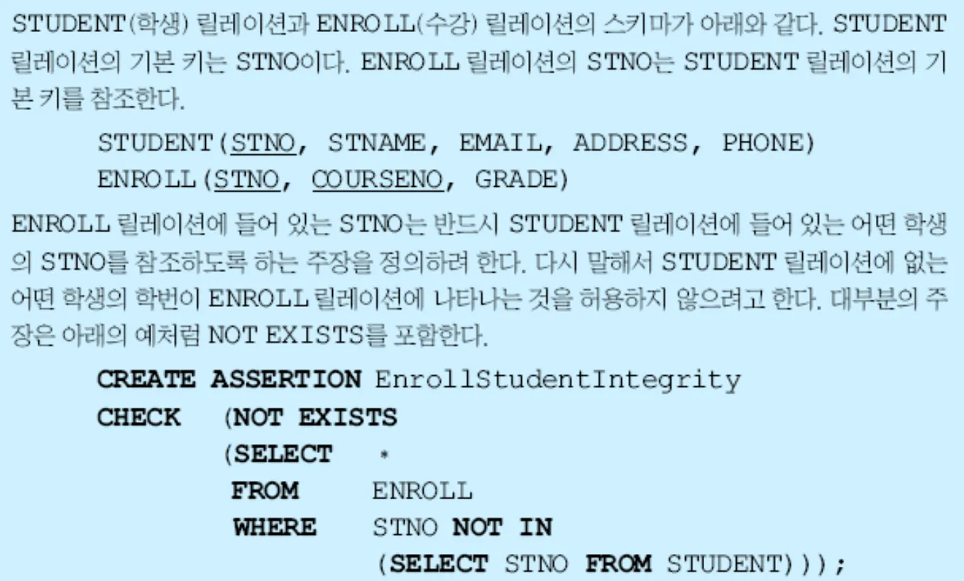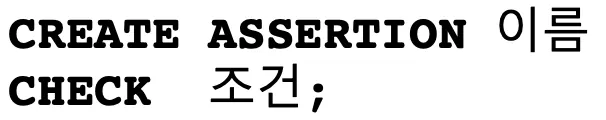 - 트리거보다 좀 더 일반적인 무결성 제약조건