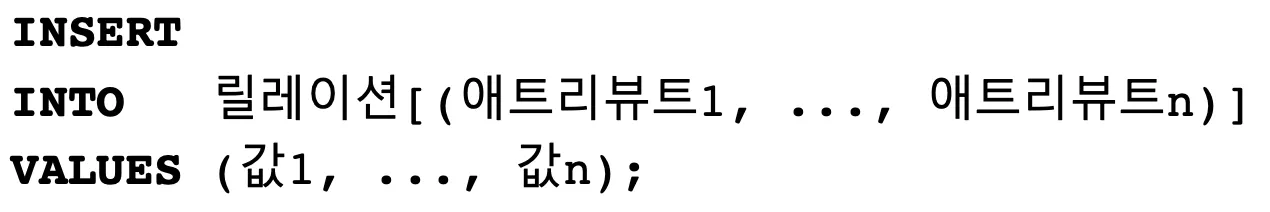 - 결과로 생성되는 릴레이션은 <애트리뷰트 리스트>에 명시된 애트리뷰트들만 가짐