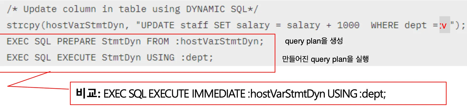 - 응용을 개발할 때 완전한 SQL문의 구조를 미리 알고 있지 않아도 됨