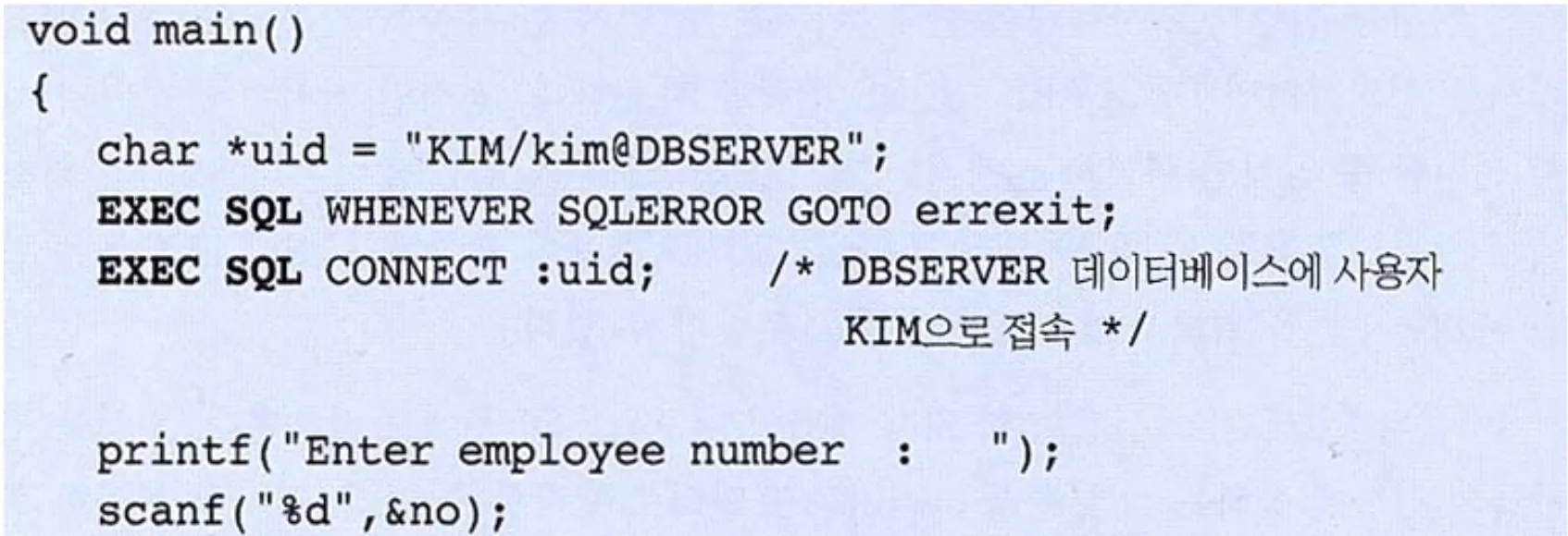 - 오라클에서 C 프로그램에 SQL 문을 내포시키는 방법