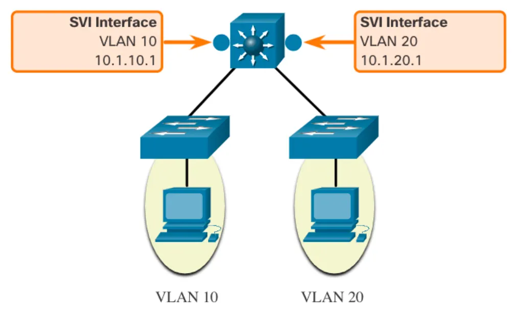 - SVI는 L3 스위치에 구성된 가상 인터페이스