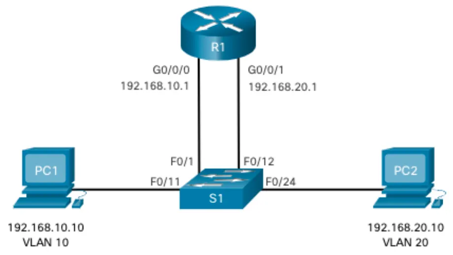 - 레거시 Inter-VLAN 라우팅은 스위치 네트워크에서 더 이상 구현 X → 설명 목적으로만 사용