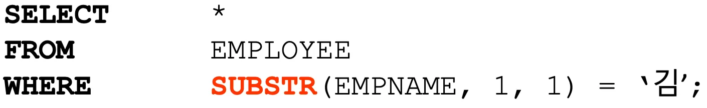 - 인덱스가 정의된 애트리뷰트에 산술 연산자가 사용됨