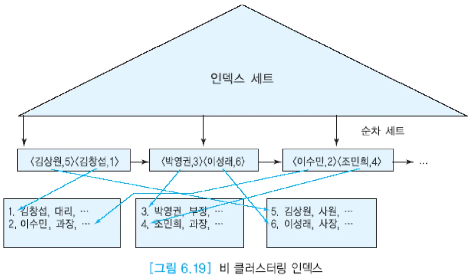 - 어떤 인덱스 엔트리에서 참조되는 데이터 블록을 읽어오면 그 데이터 블록에 들어 있는 대부분의 레코드들은 범위를 만족