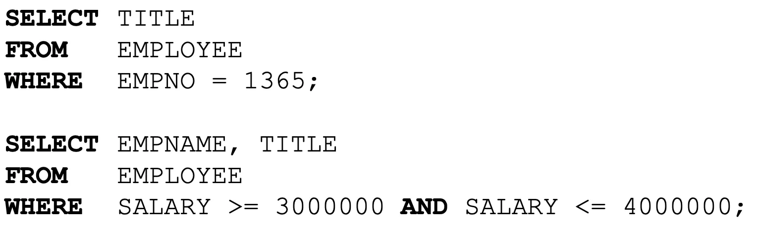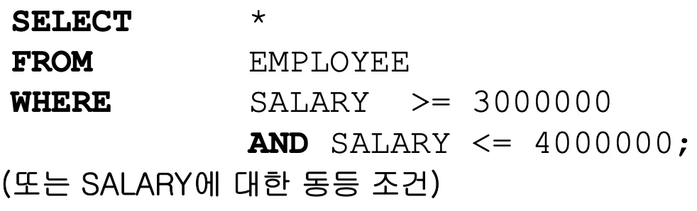 - EMPLOYEE 화일이 EMPNO의 순서대로 저장 → 첫 번째 SELECT문은 2진 탐색, 두 번째 SELECT문의 WHERE절에 사용된 SALARY는 저장 순서와 무관하기에 전체 탐색