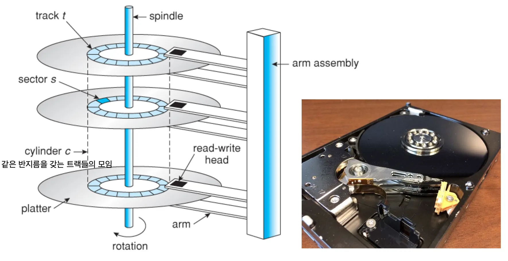 - 실린더: 여러 개의 디스크 면 중에서 같은 지름을 갖는 트랙들