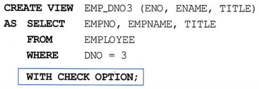 - 이 뷰를 정의할 때 WITH CHECK OPTION을 명시했다고 가정
