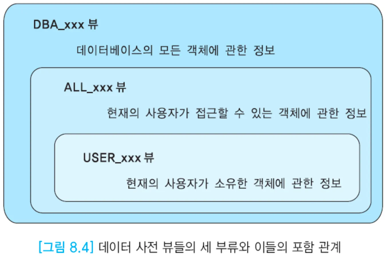 - 데이터 사전(data dictionary) 또는 시스템 테이블이라고도 부름