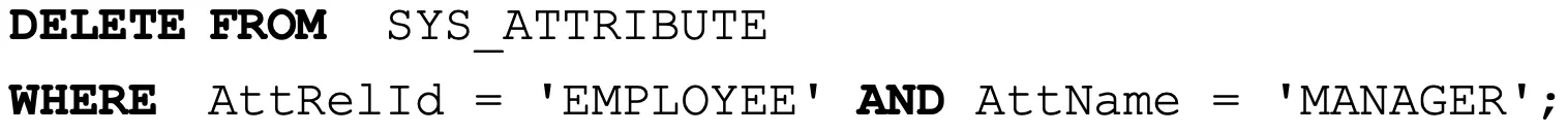 - EMPLOYEE 릴레이션의 소유자인 KIM이 EMPLOYEE 릴레이션에서 MANAGER 애트리뷰트를 삭제
