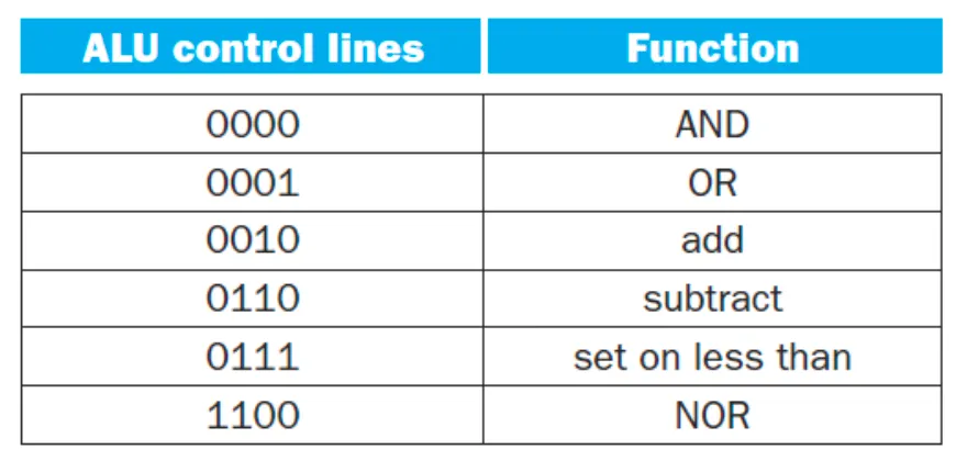- lw, sw → ALUOp: 00 → ALU control Input: 0010 → Add