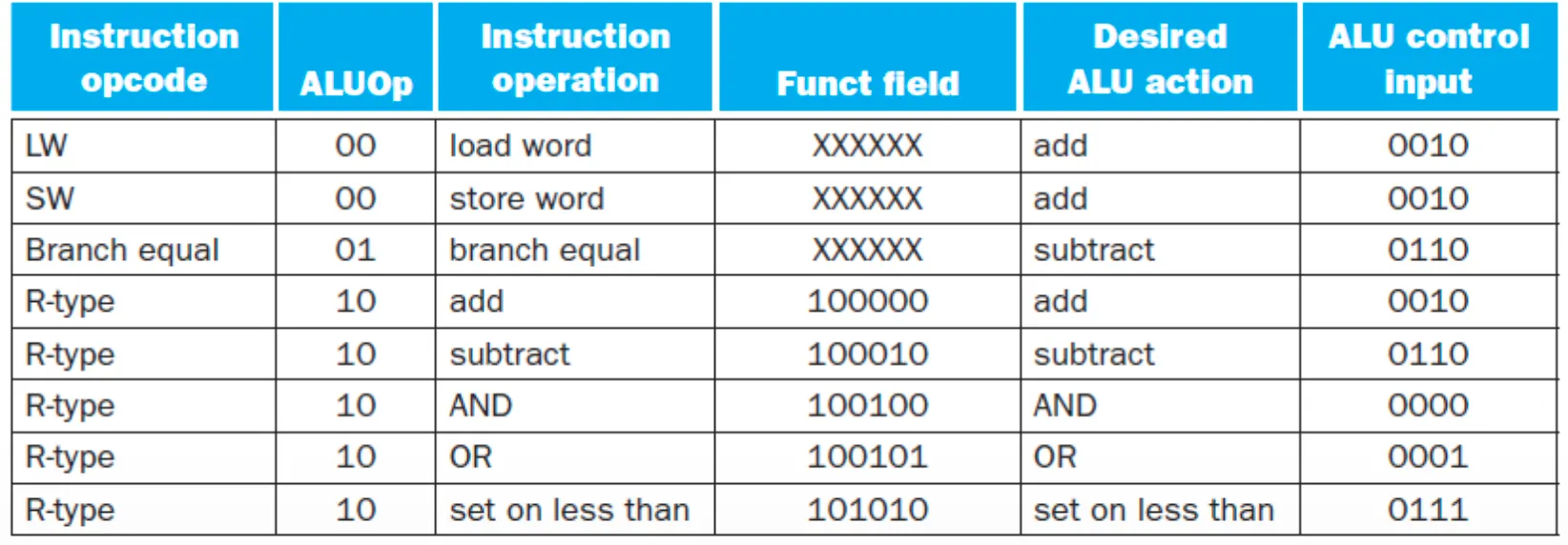 - ALUOp(2-bits) + “funct”(6-bits)