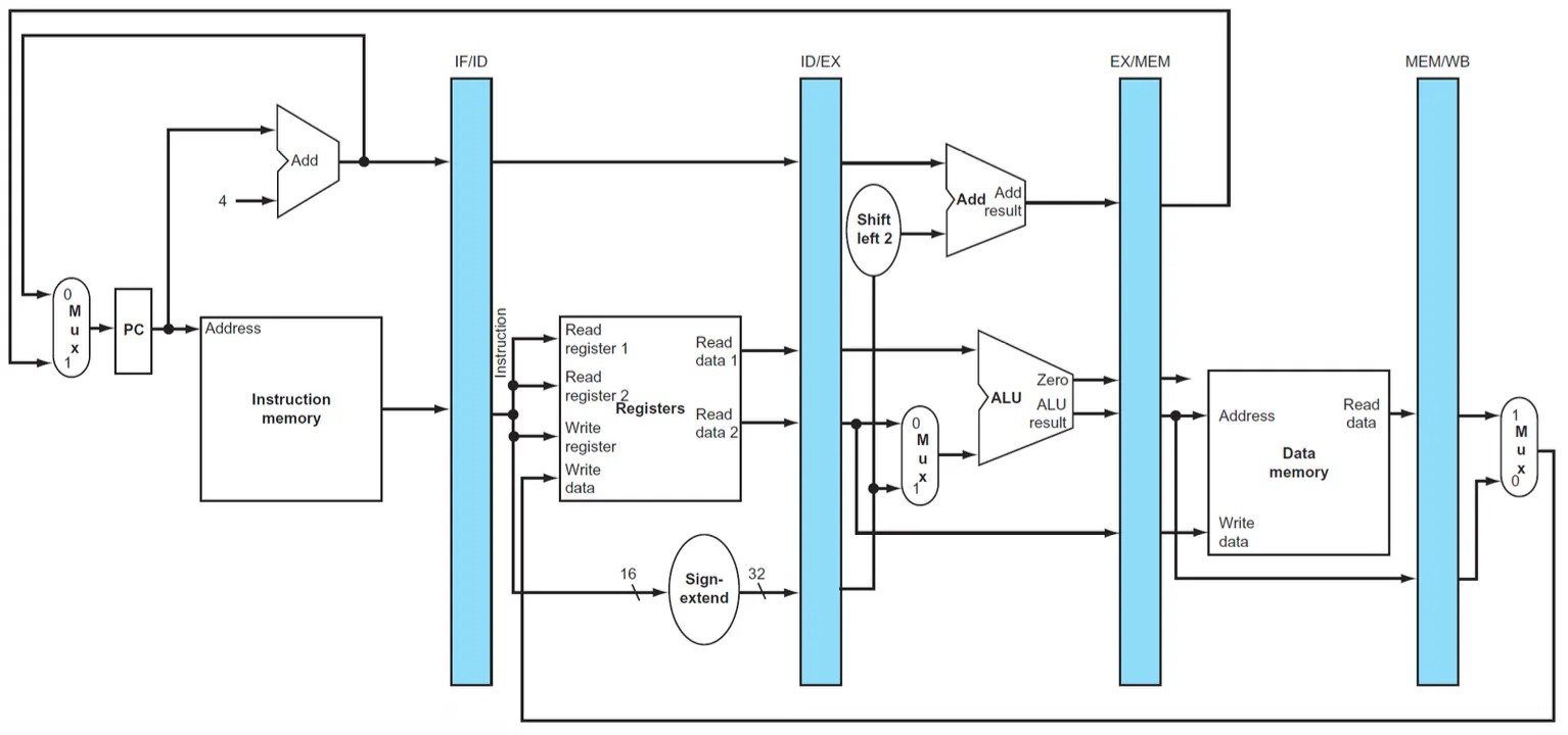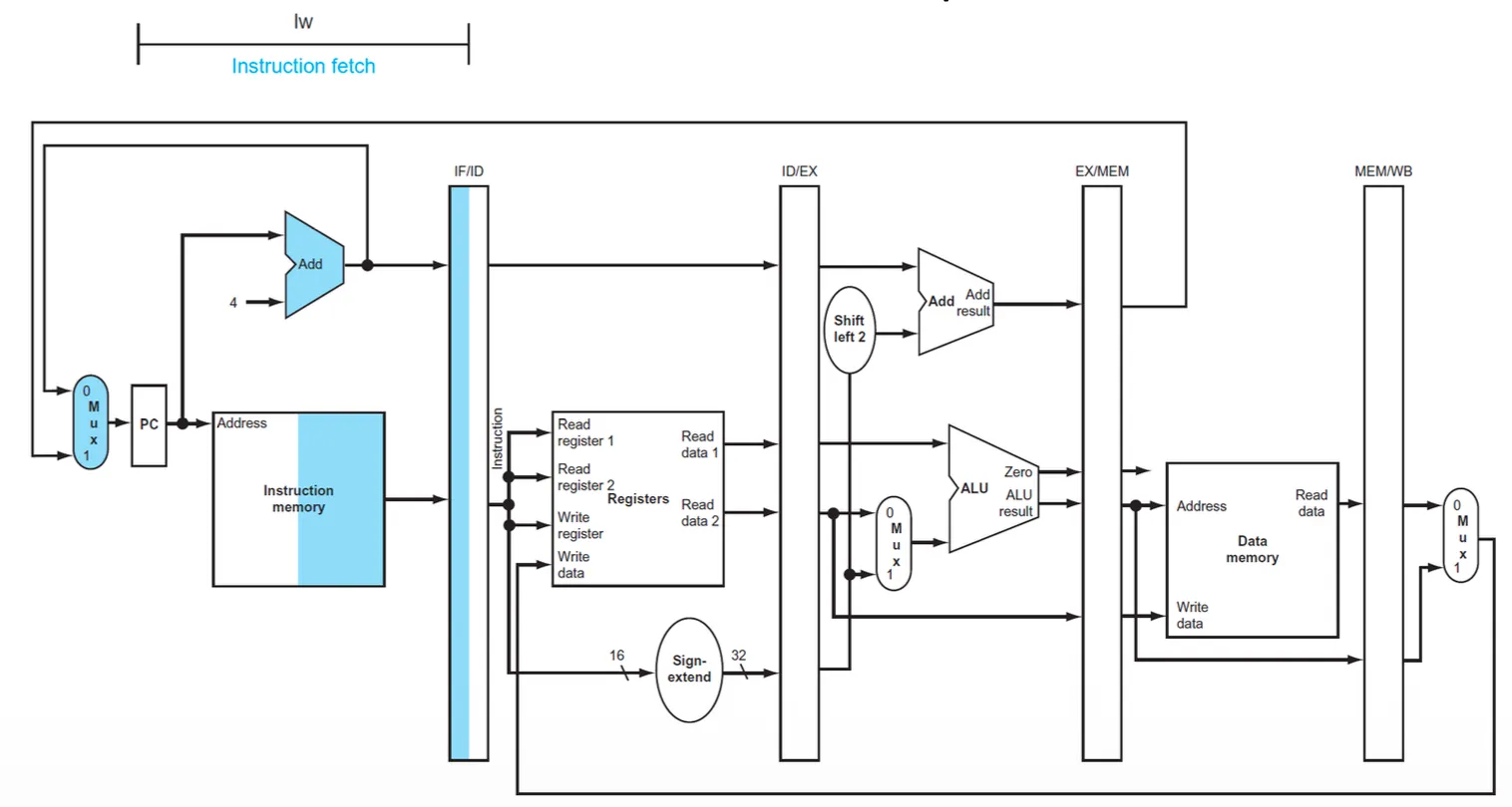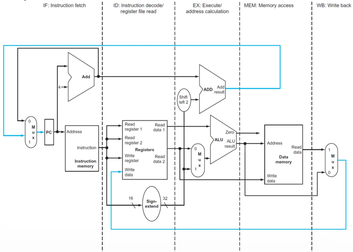- 이렇게 더해진 주소는 IF/ID pipeline register에 저장됨 → beq 같은 나중 명령어를 위해 필요