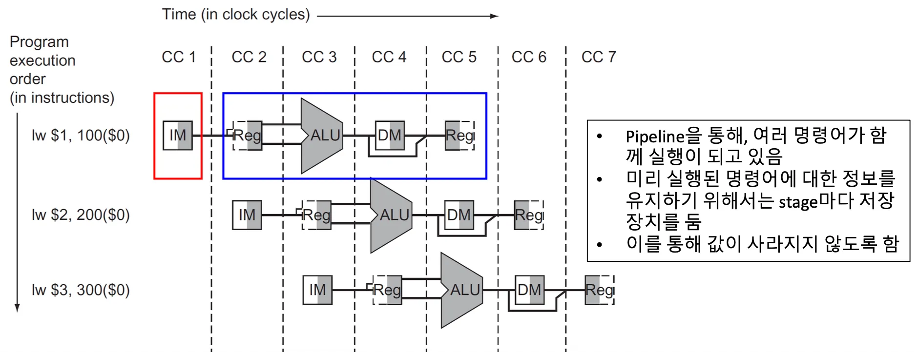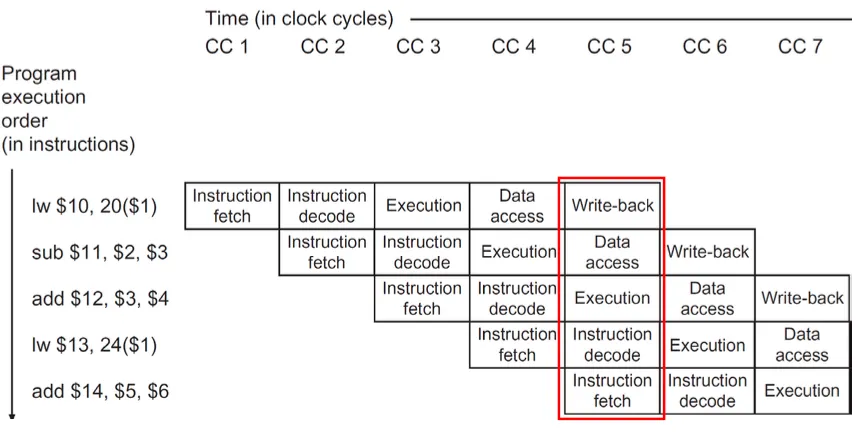- Pipelining: 여러 인스트럭션들이 중첩해서 실행시키는 기법