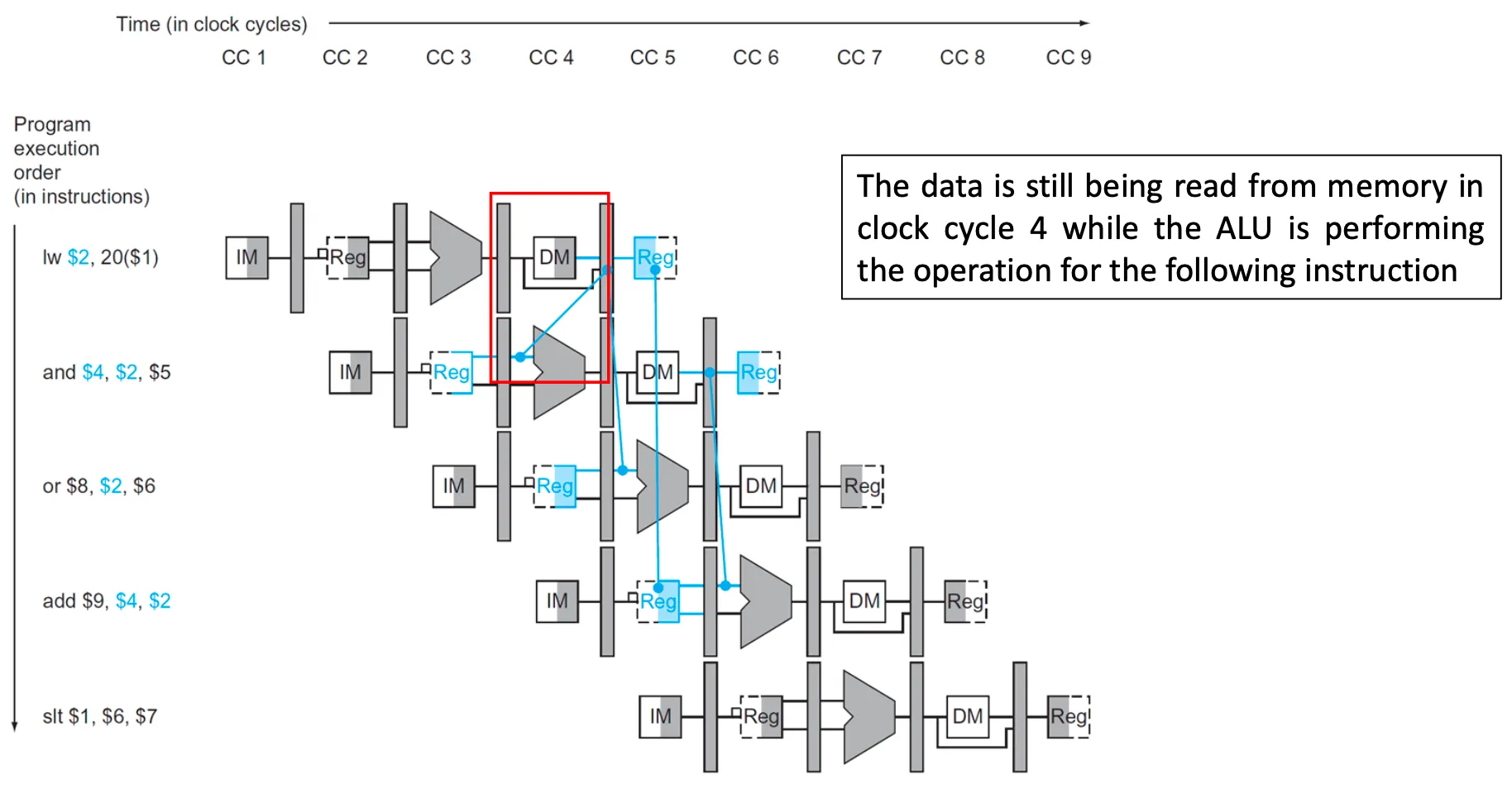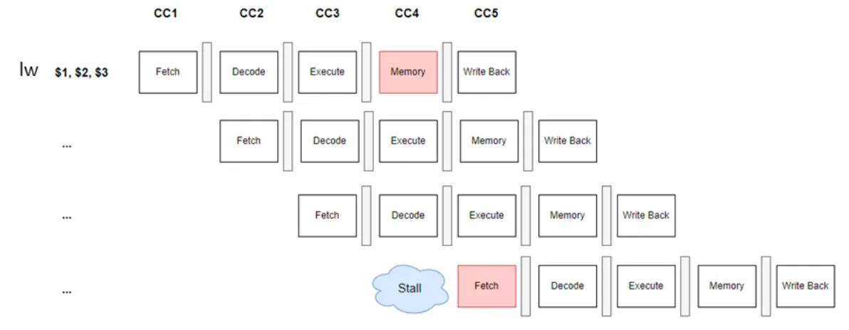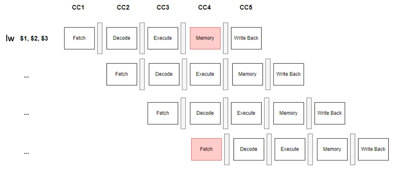 - CC4에서 인스트럭션과 데이터가 같은 메모리에 저장된 경우 → fetch, memory 단계가 같은 clock cycle에 겹치면, 같은 메모리에 동시에 접근하여 충돌 발생
