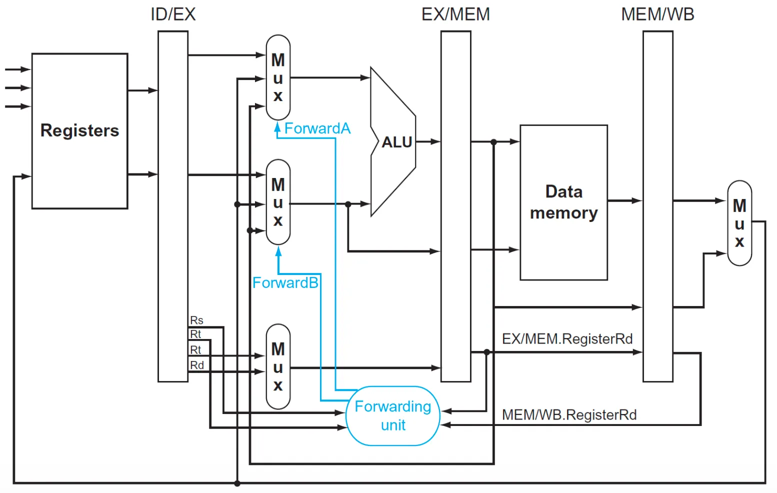 and (EX/MEM.RegisterRd == ID/EX.RegisterRt)) ForwardB = 10