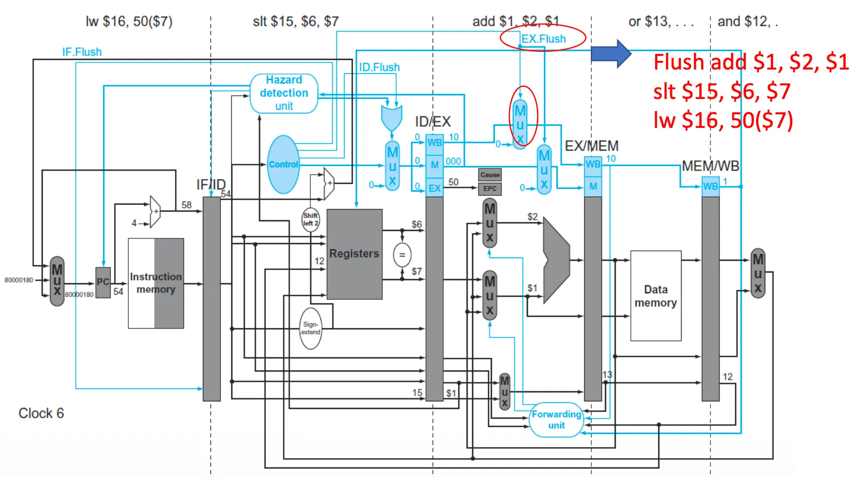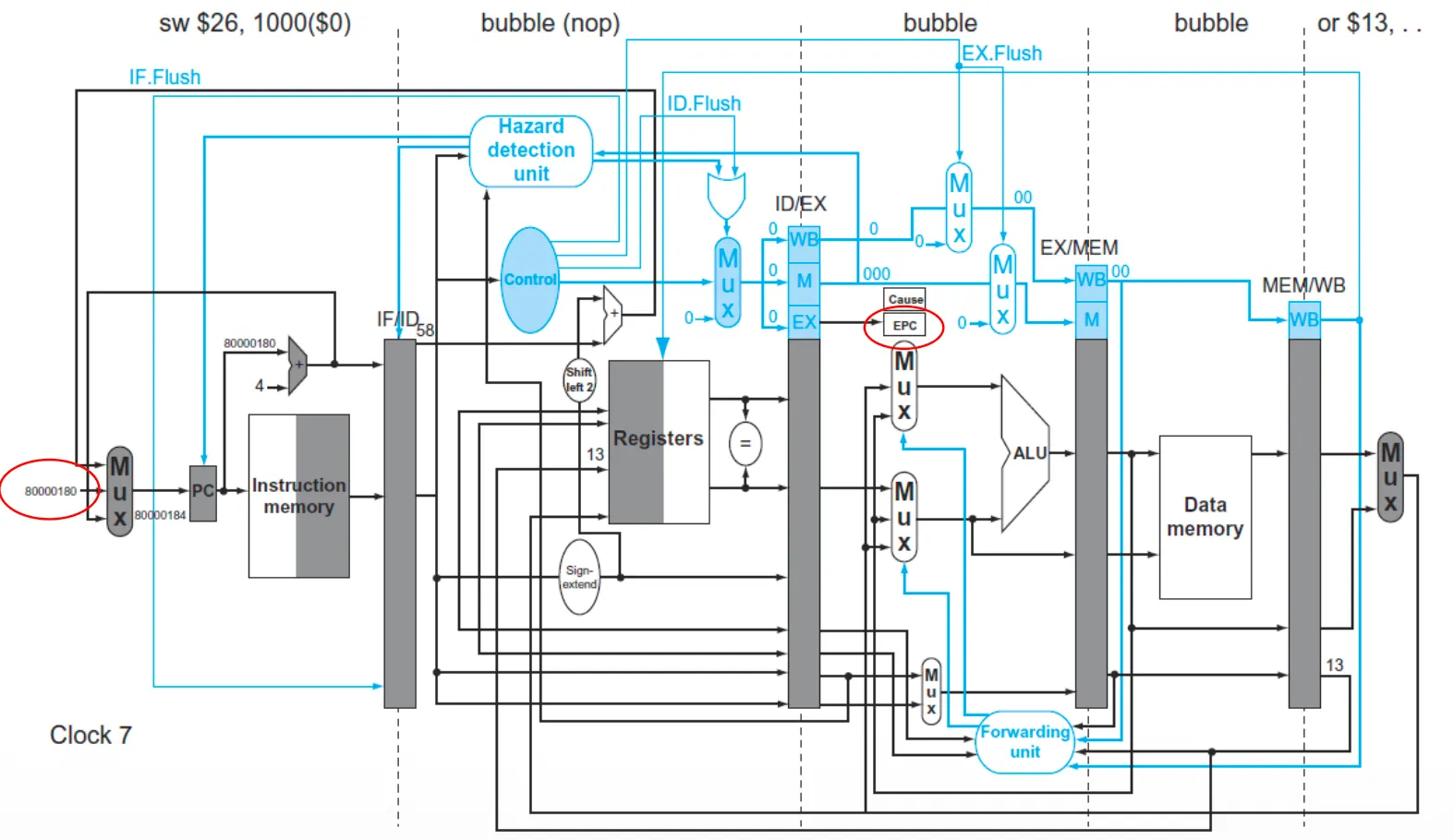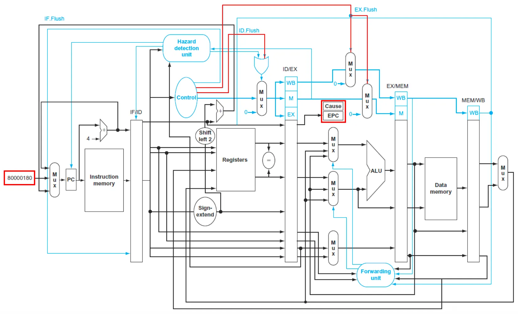 - EX 단계에서 add 과정 중 overflow 발생 → PC에 8000 0180 저장