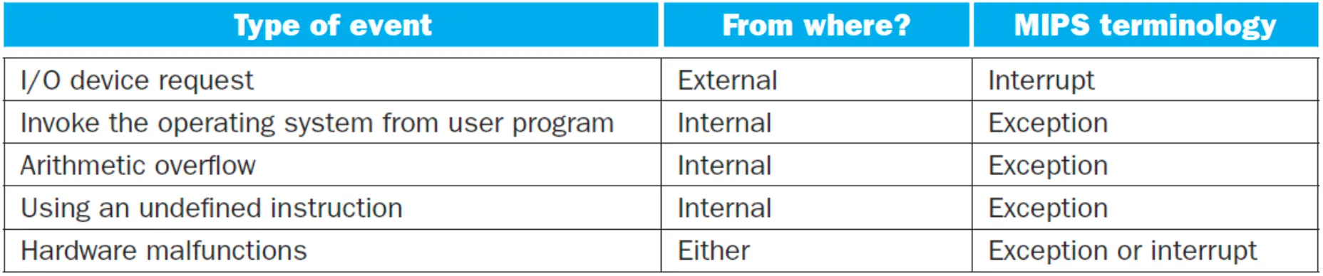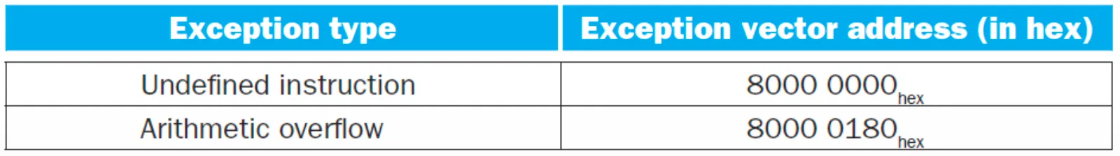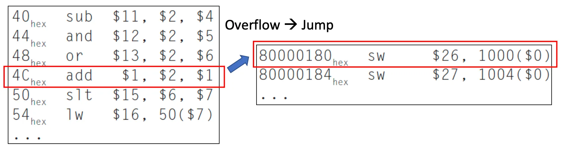 - Cause Register(32-bits)에 예외 이유 저장 → 10: undefined instruction, 12: arithmetic overflow