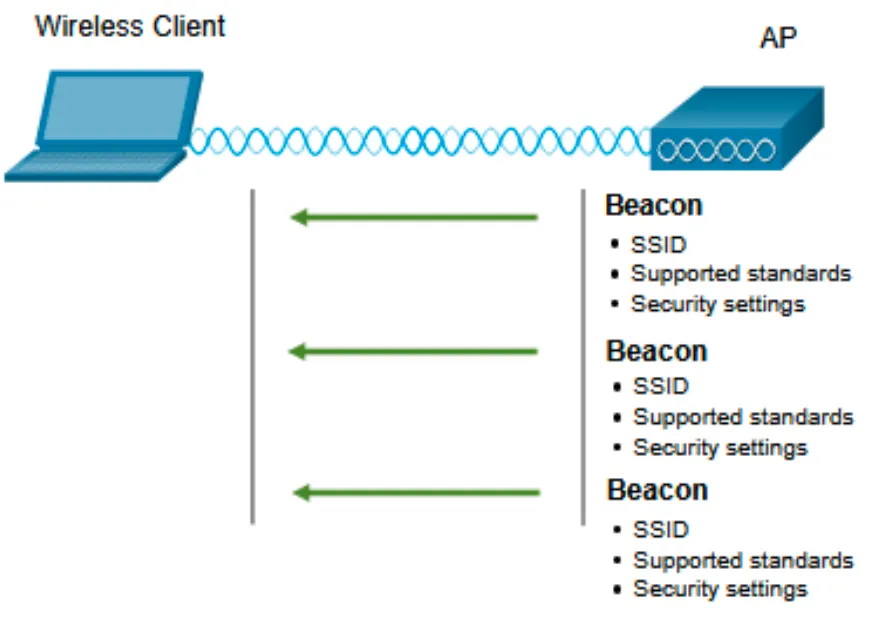 - 네트워크에 연결하려면 SSID를 확인하여 무선 클라이언트를 수동으로 구성해야 함
